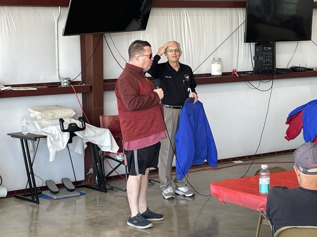In a special recognition Dick brought out several embroidered jackets  to present.  First up was Ray Lewis who completed and flew 2 place AutoGyros (MTO and Cavalon).  As a previous Bonanza owner this aircraft opened up a whole new community of flying friends in the gyro community. It was also personally satisfying to complete the build with his son Michael.  Next up was Gene Chiappe who built and flew a Zenith CH-750 Cruzer powered by a Continental O-200.  Finally, Jason Tremble stayed in the RV world by completing an RV-10 after previously building an RV-7.  He said this one was special because his son was able to help in the construction.  He was also able to help build his engine, an Aerosport IO-540.  Congratulations to all these guys who persevered through an often challenging and frustrating build through to the finish line! One last jacket was awarded to Sue Cole who had an unfortunate encounter with a gas heater melting the back of her jacket at a previous chapter meeting.  We are thankful that only the jacket encountered the burn!